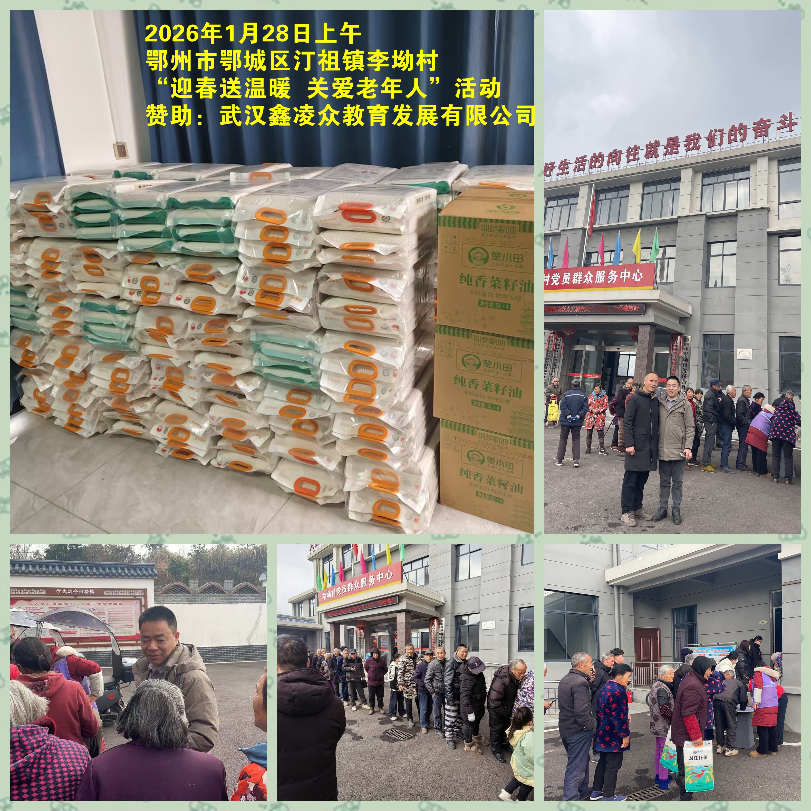 2026年1月28日上午,由我司赞助的“迎春送温暖,关爱老年人”公益活动,在鄂州市鄂城区汀祖镇李坳村顺利进行。该村目前属于省级贫困村,超过60岁以上的老人近300人。