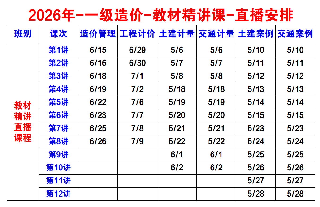 2026年一级造价工程师直播课程安排